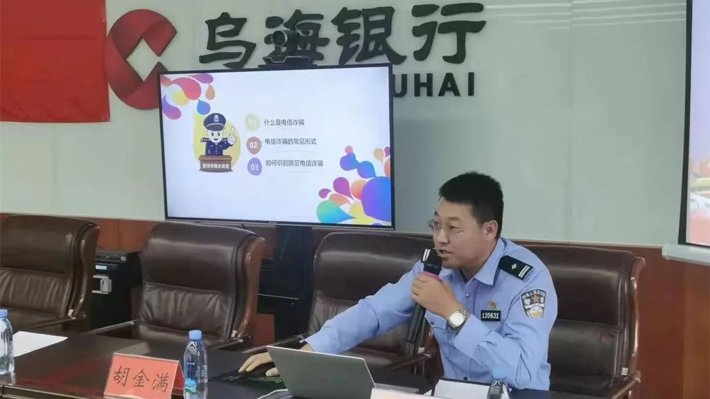 为坚决遏制电信网络诈骗违法犯罪高发态势,预防和减少各类电信诈骗案件的发生,进一步提高辖区企业职工对各类电信诈骗方式的鉴别能力和自我防范意识。9月10日下午6时,额鲁特路派出所党支部与乌海银行党支部共同开展了“和谐网络你我共享 电信诈骗大家共防”安全教育主题党日活动。