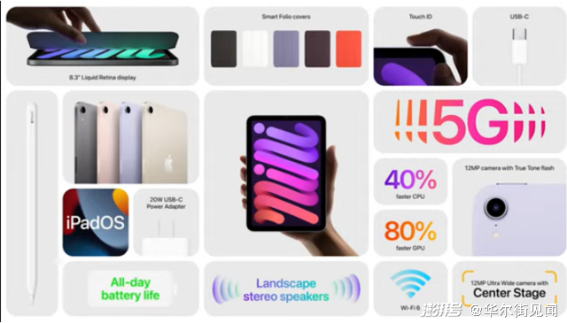 升级版iPad Mini获得全新设计和性能提升,被公司称为史上最强大的同类产品和“史上最大升级”,将支持5G网络和拥有更小的8.3英寸屏幕。