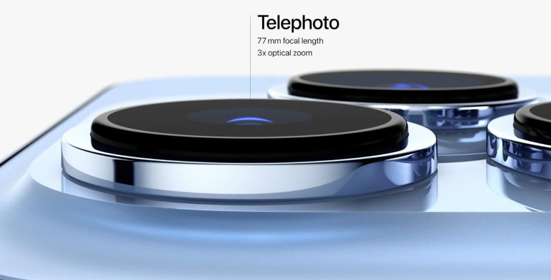 iPhone 13 Pro / 13 Pro Max 在摄像头的升级上更显著一些,之前 12 Pro/ Pro Max 上 52mm 的长焦镜头,升级到了 77mm ,支持 3 倍的光学变焦。