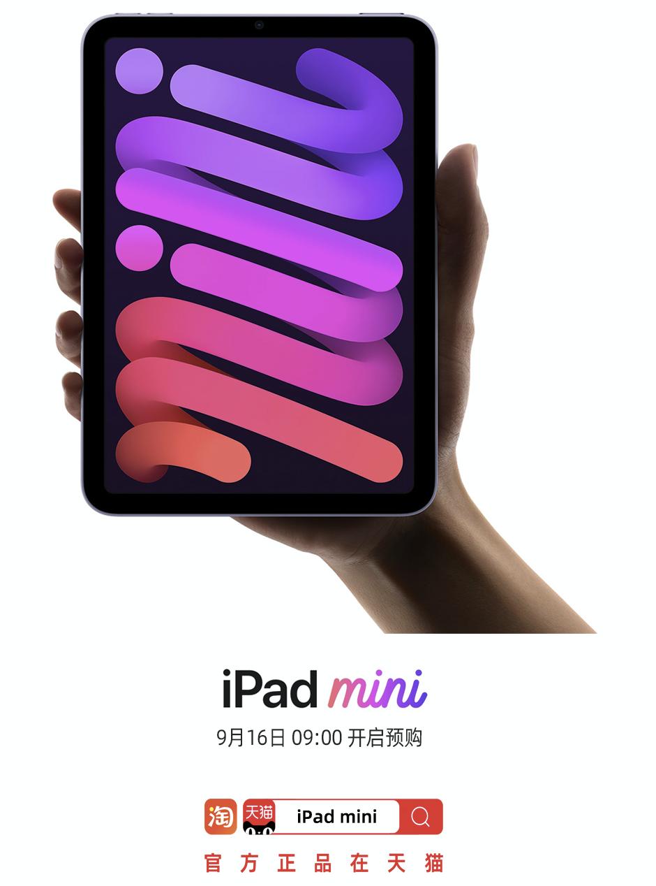 在天猫的苹果旗舰店, iPhone 13 系列 9 月 17 日晚上 8 点开启预购,新 iPad 和 iPad mini 6 则是 9 月 16 日早上 9 点开启预购,如果大家有兴趣千万别错过。