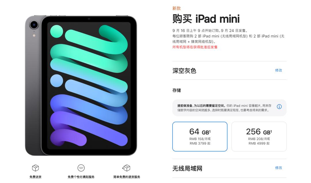 基础款 iPad 的价格倒是没变,64GB 2499 、256GB 3699 的价格,可以说是加量不加价了: