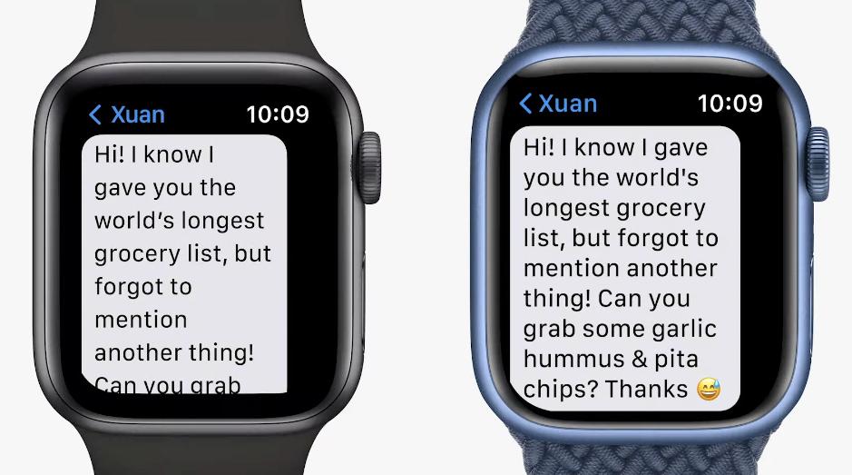 首先在设计上,新款的 Apple Watch 七代没有像曝光的谍照那样,把圆润的边框改成了平直边缘的造型。