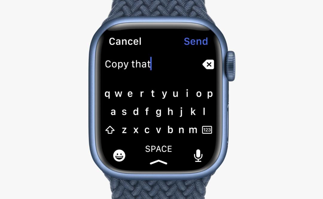 苹果还把全键盘塞到了手表中,终于可以摆脱手写,用键盘打字的方式来输入文本。