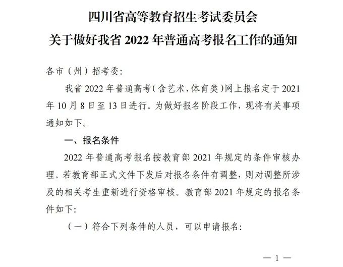 ○ @四川高考生 10月8日起,我省2022年普通高考开始报名