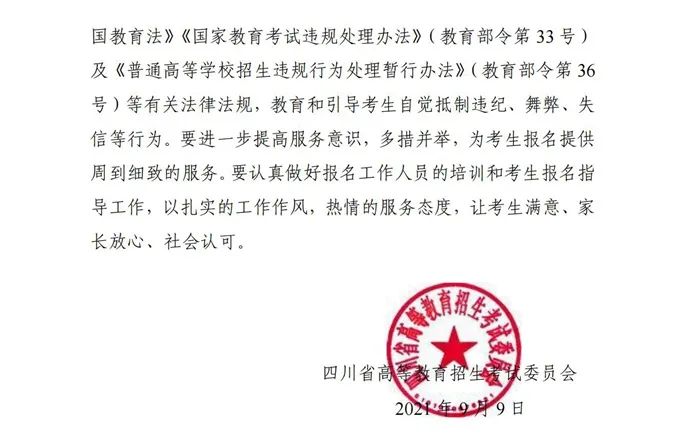 9月14日,从省教育考试院获悉,四川2022年普通高考(含艺术、体育类)网上报名定于10月8日至13日进行,详情如下↓(四川省教育考试院)
