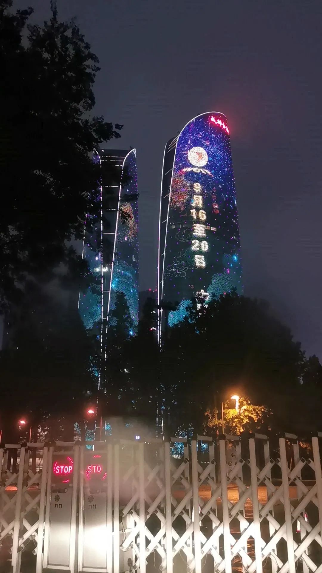 ○ 成都双子塔灯光秀喜迎第十八届西博会