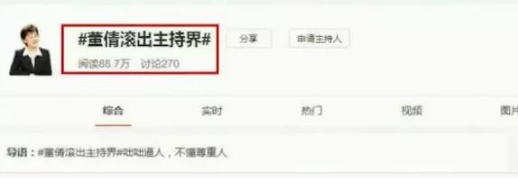 于是,在微博头条上,有网友喊话#让董倩滚出主持界#的话题,斥责她咄咄逼人、不懂得尊重他人。