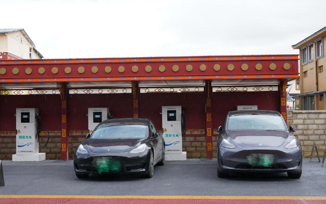 9月13日,两辆特斯拉驶入香格里拉市独克宗古城东门停车场进行充电。充电桩操作非常简单,车主只要将车辆停放在车位内,对照充电桩边上的操作指南,进行扫码自助充电即可。