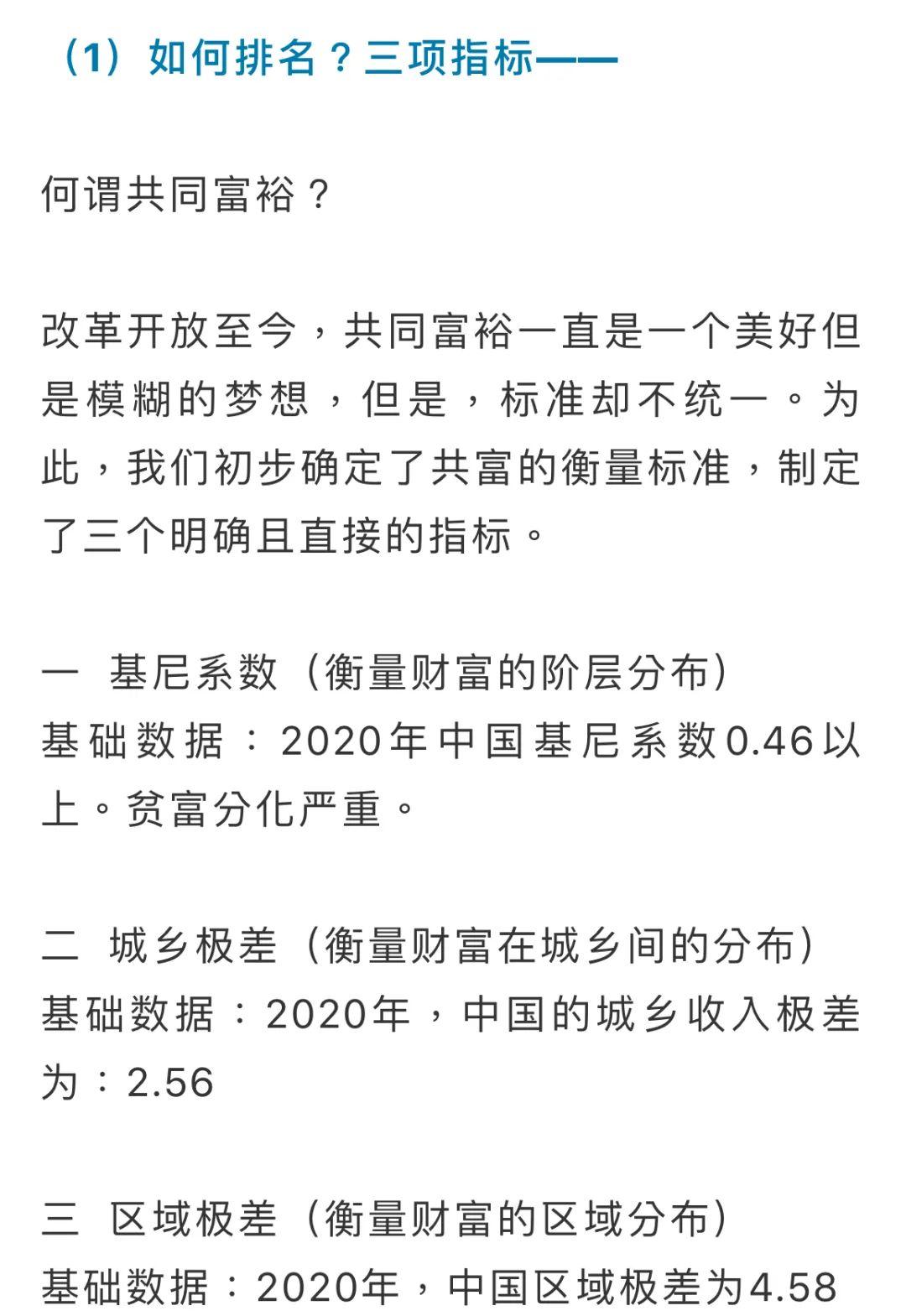 一个意外是,北京、上海、深圳等中国最富裕强大的城市,全部落选十大共富城市。