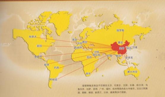 1875年左右,望都辣椒制品已经开始出口朝鲜、日本等国。如今,望都辣椒制品集辣椒丝、辣椒碎、辣椒酱、辣椒油和泡椒三种业态共生,是“中国辣椒之都”、“ 河北特产之乡”。