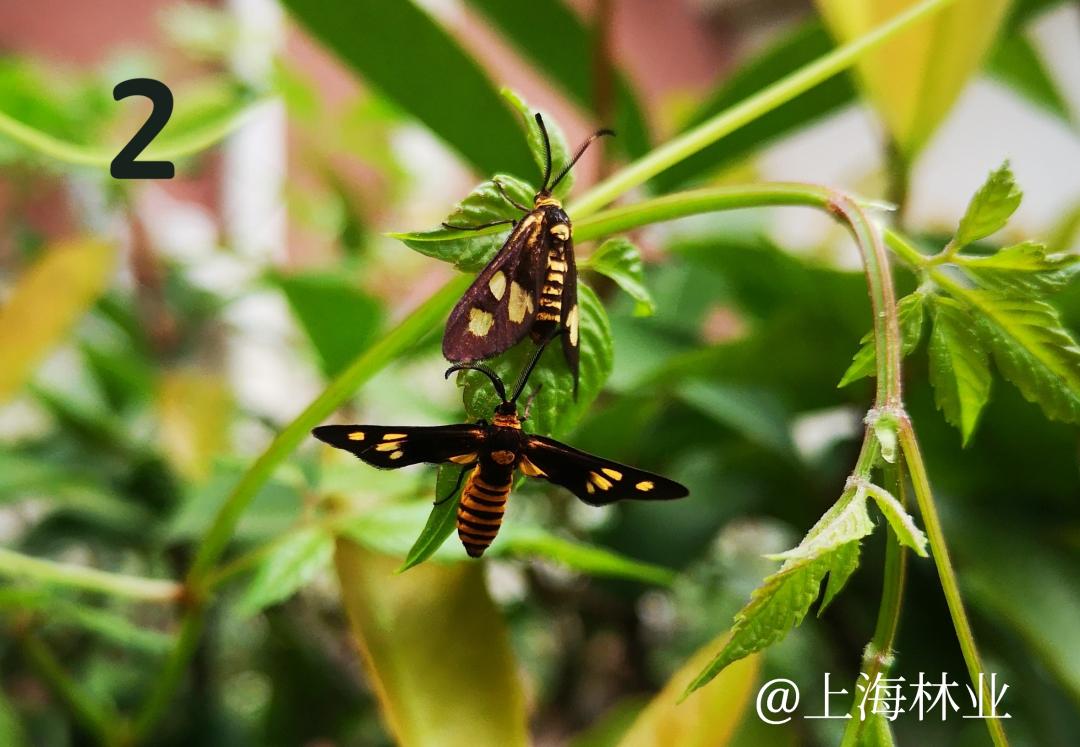 现在这两种昆虫比较常见,且都取食一种恶性杂草:乌蔹莓。图一是鹿蛾,而图二是条纹小斑蛾。两者成虫都是黄黑相间的体色,乍一看很相似,但若仔细观察,是存在一定区别的,常有人把条纹小斑蛾当成是鹿蛾,它也曾被误称为乌蔹莓鹿蛾。