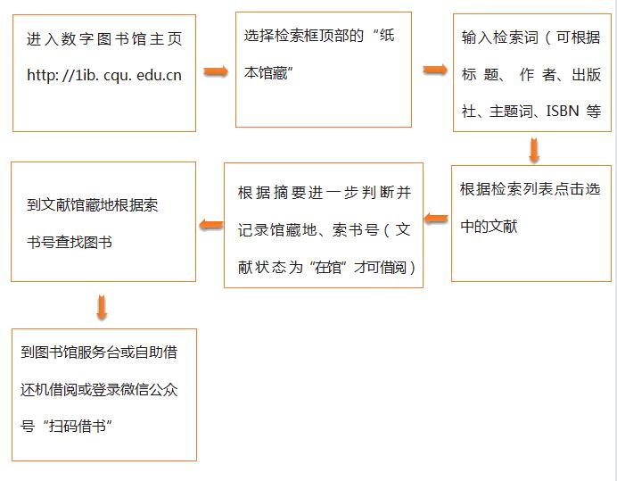 读者登录“重庆大学图书馆”微信公众号,点击“智慧图书馆”,找到“弘深搜索”,在搜索栏输入你要寻找的书名,按照索书号及导航指示找到你需要的书,然后扫码借书(条形码就在书本的最后一页哦~)。