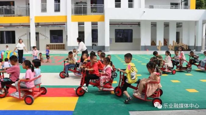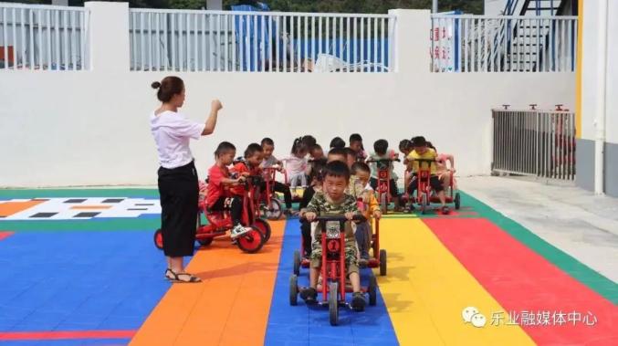 ▲小朋友坐上幼儿园的玩具车非常高兴