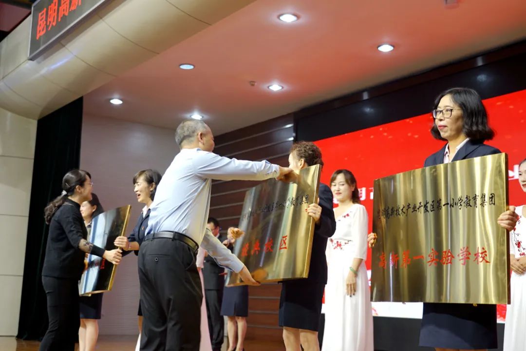 随后,五华区教育体育局相关负责人分别为高新一小教育集团4个校区授牌。
