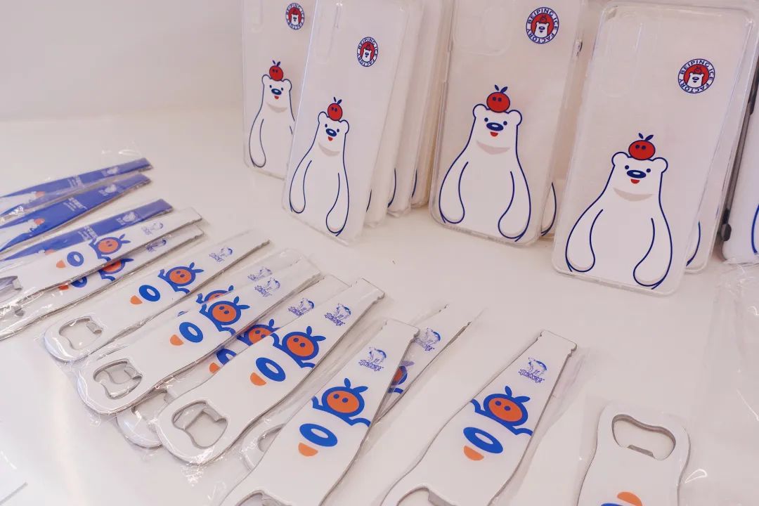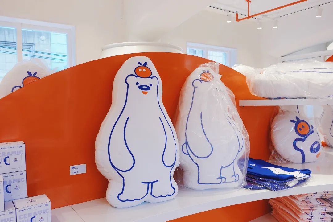 而在二楼,有更多以北冰洋商标中的北极熊形象为原型的文创产品供人挑选,包括公仔、抱枕、茶杯、滑板等。特别的是,这里也有足够的桌椅,不管你是外带一杯冰饮解渴,还是品尝一杯精酿啤酒慢慢享受午后,北平制冰厂都可以满足你的需求。