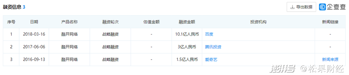 另据企查查数据,酷开网络成立至今拿下了3轮融资,分别为2016年爱奇艺战略投资的1.5亿元;2017年腾讯战略投资的3亿元;2018年3月,百度战略投资的10.1亿元。
