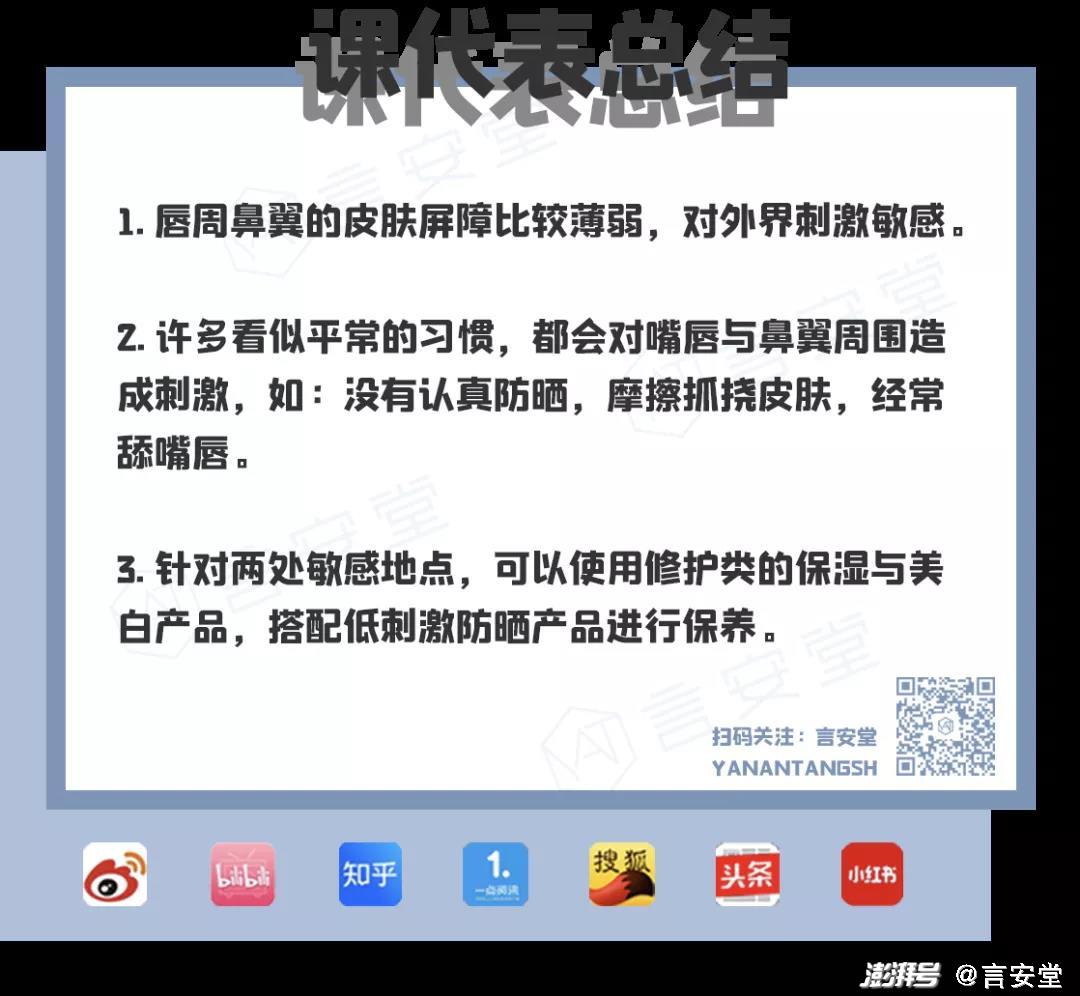 所以日常生活中,我们一边要尽可能避免外来刺激,比如不要舔嘴唇、扣鼻翼,一边要构建防御屏障,用保湿产品以及防晒霜,这样双管齐下,就可以让鼻翼、唇周远离暗沉啦。