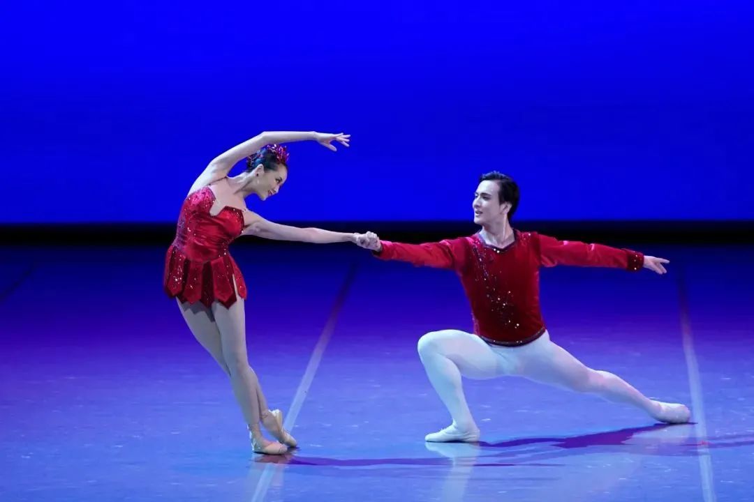 《红宝石》由斯特拉文斯基《随想曲》一个强音和弦开始,热情火辣、带有爵士味道的芭蕾舞步与新古典主义交响水乳交融,营造热情奔放的美国风格,把红宝石闪亮、活跃、耀眼的特质展露无疑,更显“看见交响,听见芭蕾”迷人魅力。