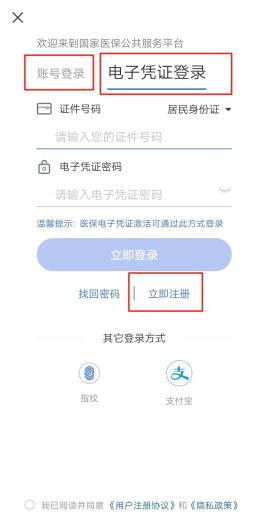 进入国家医保服务平台APP首页,需要先登录个人医保电子凭证。进入登录页面,有【账号登录】和【电子凭证登录】两种方式。