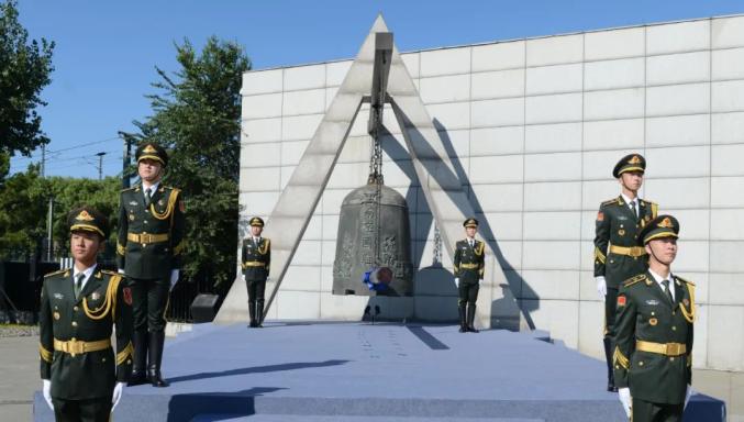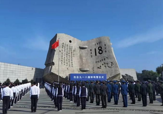 9月18日上午,勿忘九一八撞钟鸣警仪式在辽宁沈阳“九·一八”历史博物馆残历碑前广场举行。