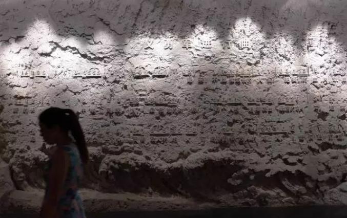 参观者经过沈阳九一八历史博物馆内的《义勇军进行曲》浮雕墙。新华社记者 李钢 摄