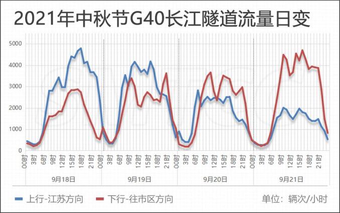 G40长江隧道:预计首日出行高峰出现在9时至16时。节日最后一天长江隧道流量以下行(市区方向)为主,高峰出现在下午13至17时,建议大家错峰出行。