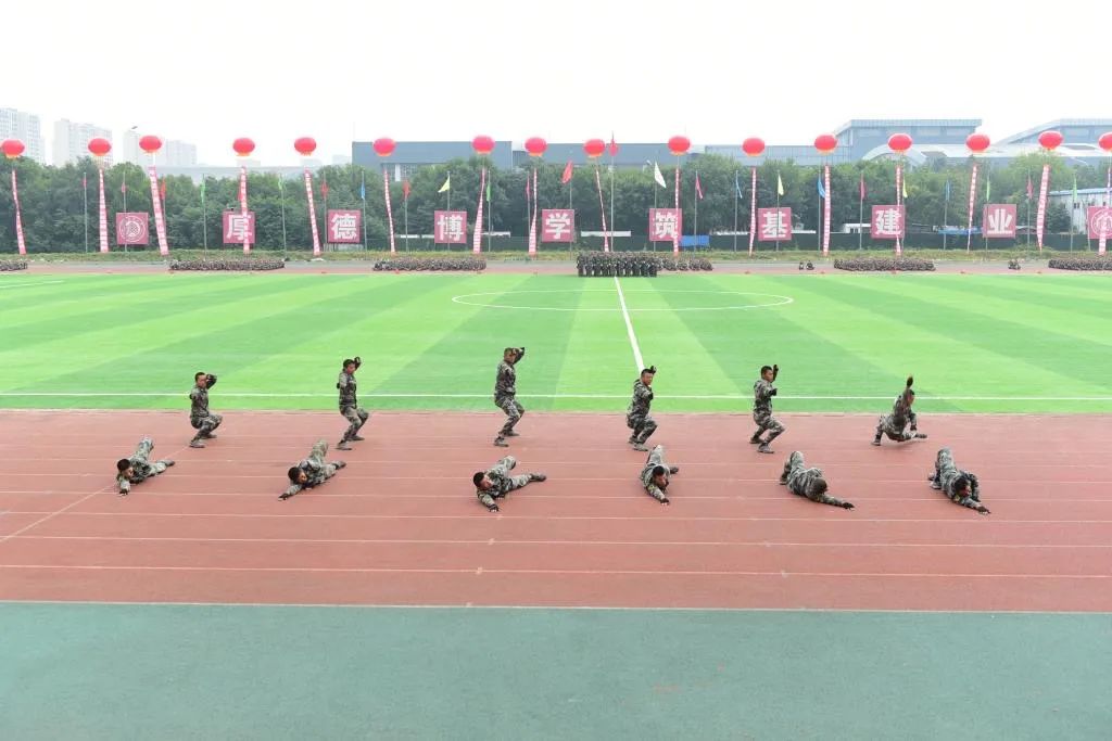 各学院代表方队分列式表演,步伐整齐,军容严整,尽显飒爽英姿;格斗术、刺杀操、军体拳方阵表演,动作整齐划一,气势恢宏,场面壮观。