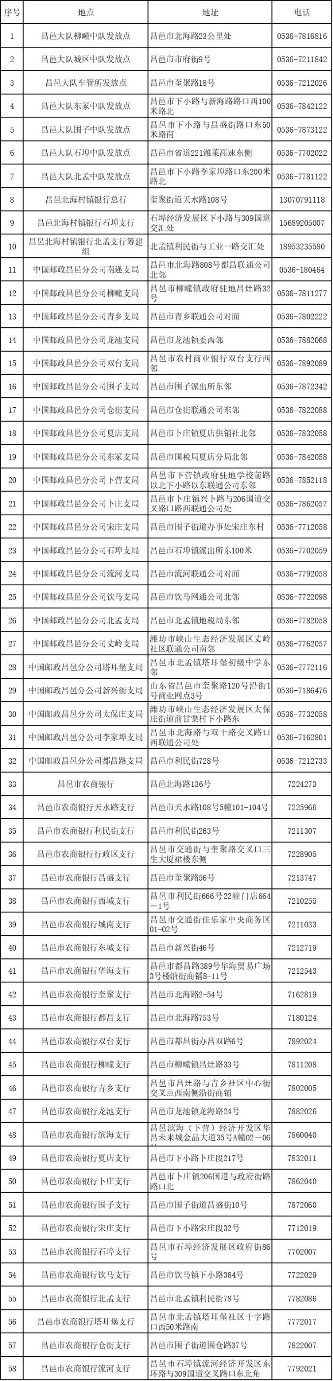 1、昌乐交警一中队发放点