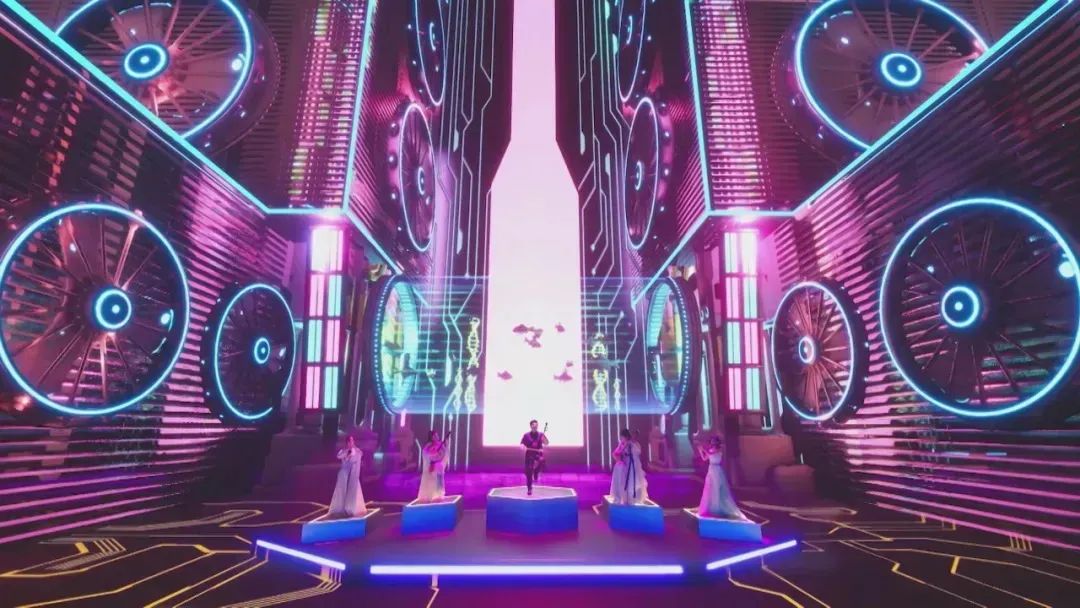 节目《豫见》中不同器乐演奏时,背景旖旎多变的的画风令不少网友啧啧称奇,但还是有少部分网友一眼能认出来,其中好几段是3A游戏中非常流行的科技风。这种风格通常拥有五花八门的视觉冲击风格,比如街头的霓虹灯、街排标志性广告以及高楼建筑等。节目正是用这种对比碰撞,让民乐与未来科技风格产生强烈的化学反应。
