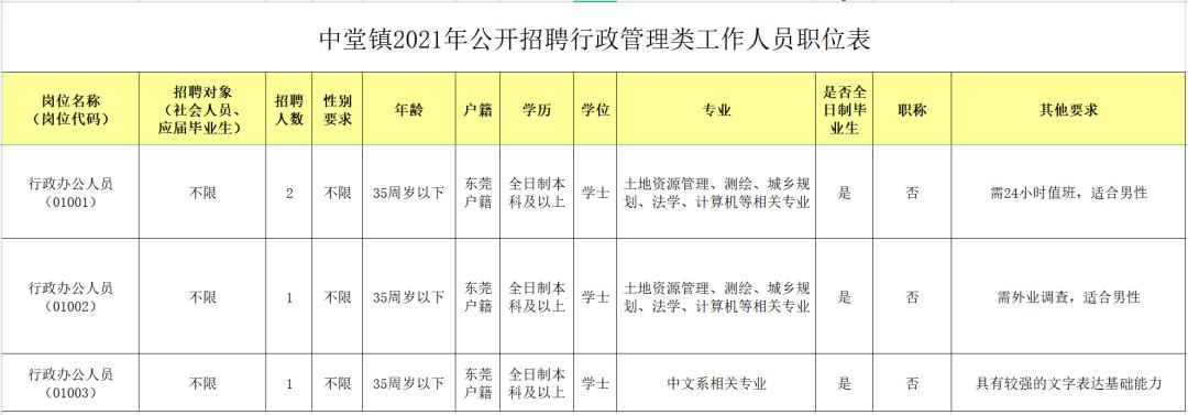 2、符合招聘岗位的要求,招聘岗位详见《中堂镇2021年公开招聘行政管理类工作人员职位表》。