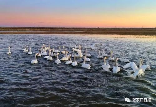 张北黄盖淖国家湿地公园又称“天鹅湖”。总面积1191.43公顷。水库建有渔场,盛产鲤鱼、鲢鱼、草鱼等鱼类,天然养殖,产鱼肥美,远近闻名。公园水面宽阔、波光粼粼吸引了众多珍奇鸟类到此栖息,万鸟齐聚、场面壮观。湿地公园迎来了遗鸥、大天鹅、小天鹅、翘鼻麻鸭、鸿雁、白琵鹭、鸳鸯、中华秋沙鸭等大量珍奇鸟类在此休憩,形成一道独特的生态景观。涿鹿桑干河国家湿地公园