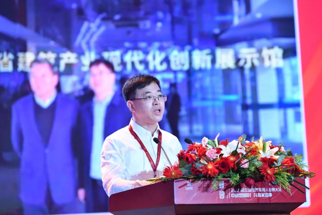 傅显明作主旨演讲时,用“知我东阳,我自豪”“兴我东阳,我参与”“强我东阳,我担当”三个篇章,重温历史东阳的灿烂辉煌,展示当下东阳的扬帆起航,展望未来东阳的锦绣前景。