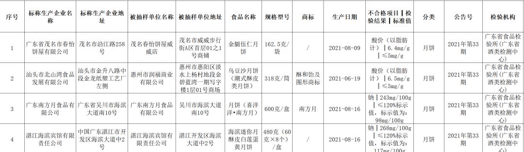 官网显示,广东省市场监督管理局已收到广东省茂名市春怡饼屋有限公司和汕头市北山湾食品发展有限公司提出的复检申请(另外2家公司复检、异议期未满,尚未收到相关申请)。