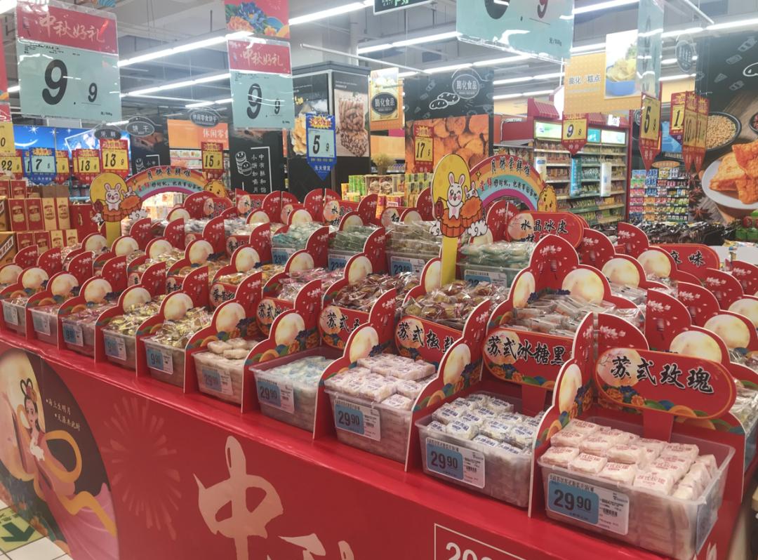 货架上都摆满了各式各样的月饼
