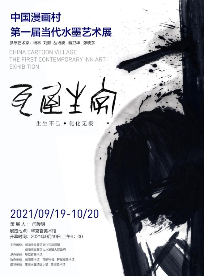 为配合国家实施乡村振兴战略,推动当代水墨艺术发展,促进乡村文化建设, 威海市文登区大水泊镇瓦屋庄中国漫画村毕克官美术馆举办 “瓦屋生字——中国漫画村第一届当代水墨艺术展”。