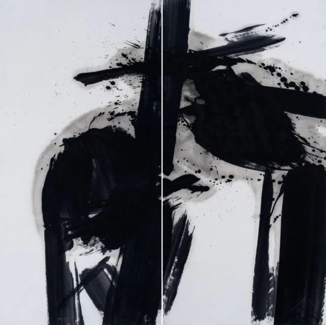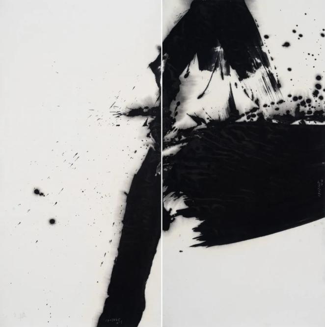 书法是写字,几千年一直如此。1980年代,随着中国政治、经济、文化开放,我们知道了日本二战前有一场书法革命,诞生了一种新的艺术形式——“现代书法”,同时也发现了欧美现代抽象艺术对东方书法有所借鉴。现代书法和抽象表现主义绘画都强化了画面上笔触的书写感,放大了构成的视觉冲击力,像书法又不是已有的书法。