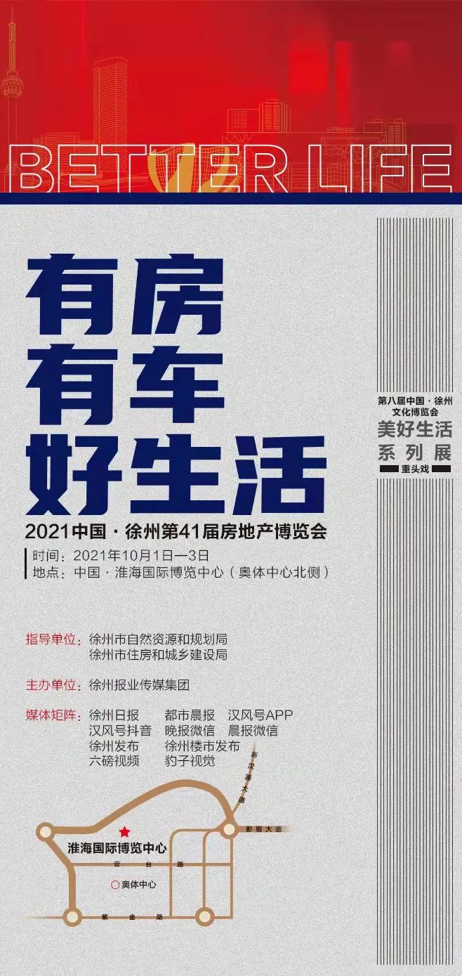 10月1日—3日,2021中国·徐州第41届房地产博览会盛大起航,美好生活的一切元素都能在这次展会中获得。徐州报业传媒集团和百万徐州市民共同见证——有房、有车、好生活!