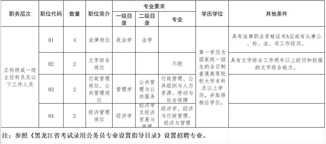1.法学专业岗位4职。要求具有法律职业资格证书A证或具有从事公、检、法、司工作相关工作经历。