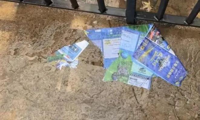 然而,记者在“哈利·波特与禁忌之旅”排队时发现,地上已经遍布了各种垃圾。 丢弃的乐园宣传册,零食外包装,矿泉水瓶随处可见。
