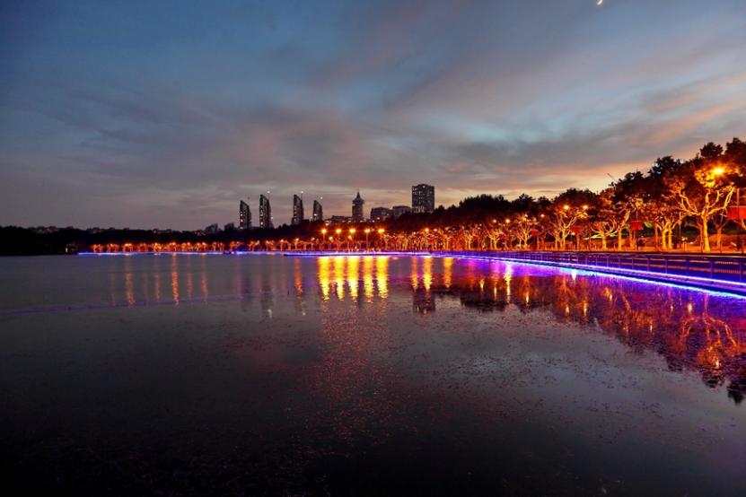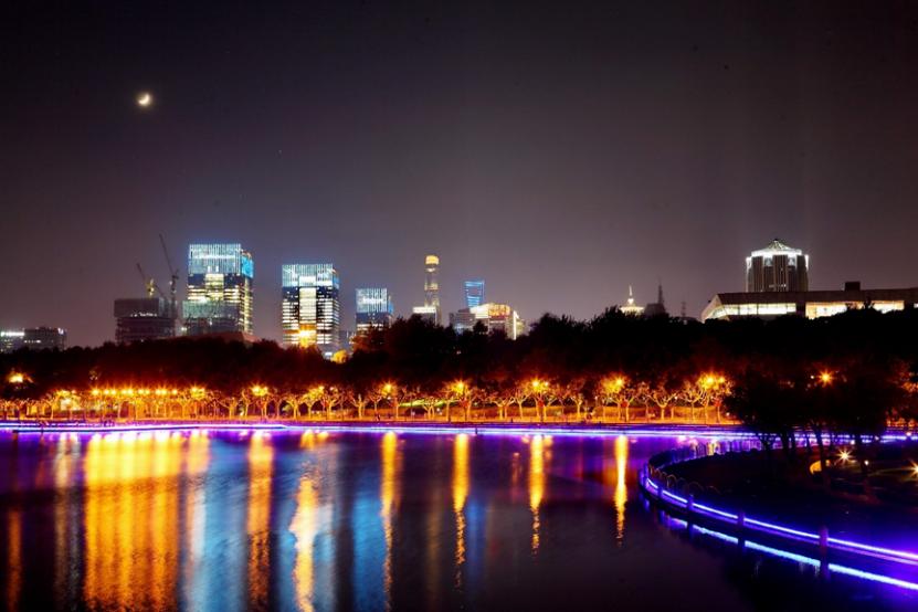 初秋的夜晚,和家人来世纪公园镜天湖边信步而游,看明月升起,配合水天一色的美景,此情此景让人无法忘怀。