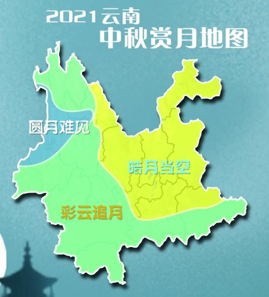 预计9月21日,云南滇中以北、以东等地天气晴朗,皓月当空,适宜赏月;滇中以西、滇南等地天空有云,偶见阵雨,可以欣赏彩云追月的美景;滇西边缘云层较厚有降水出现,阴云蔽月或将无缘看到今年的中秋明月。