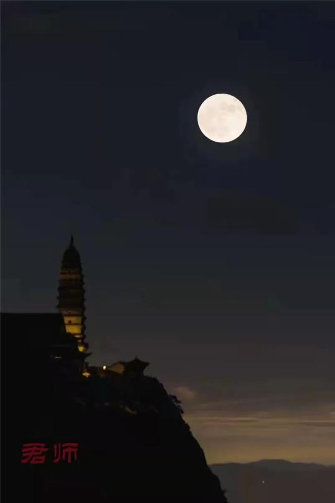 东面塔盘上秋夜观赏月景