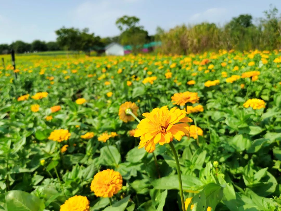 朱家角寻梦源常年以花卉为主题和特色,眼下除了粉黛乱子草花海,公园内还有百日菊和向日葵等多种花卉可供游园观赏。远远望去,花田里的花朵开得错落有致,色彩斑斓,犹如一幅迷人的五彩画卷。