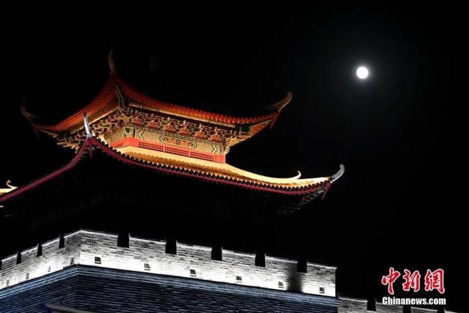 资料图:中秋月圆夜,福州古厝圆月相映成趣。中新社记者 王东明 摄