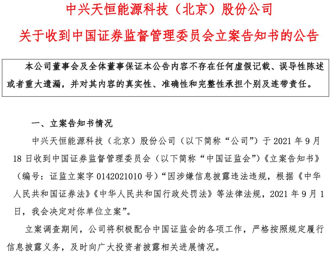 ST中天9月21日下午公告,9月18日收到了证监会立案告知通知书。通知书称,“因涉嫌信息披露违法违规”,证监会9月1日决定对ST中天进行立案。