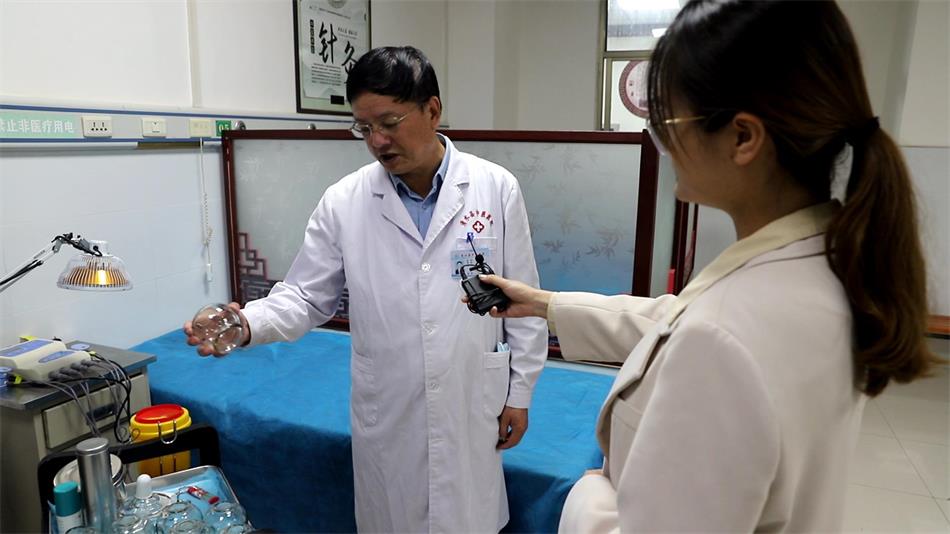 走进清水县中医院的养生馆,熏蒸机、诊疗仪、艾灸治疗仪、蜡疗仪等10余种中医理疗设备等待着新的一天的忙碌,有些病人已经早早起来灸起了艾草来缓解身体的酸痛。清水县中医院院长蔡贵生热情地介绍起康复和中医理疗设备:“这个是牵引床,这是下肢锻炼器,这是全身锻炼的(设备),那个也是运动的器械。这是拔罐的玻璃火罐,这个是理疗艾灸的器械,还有一个这种艾灸盒。”
