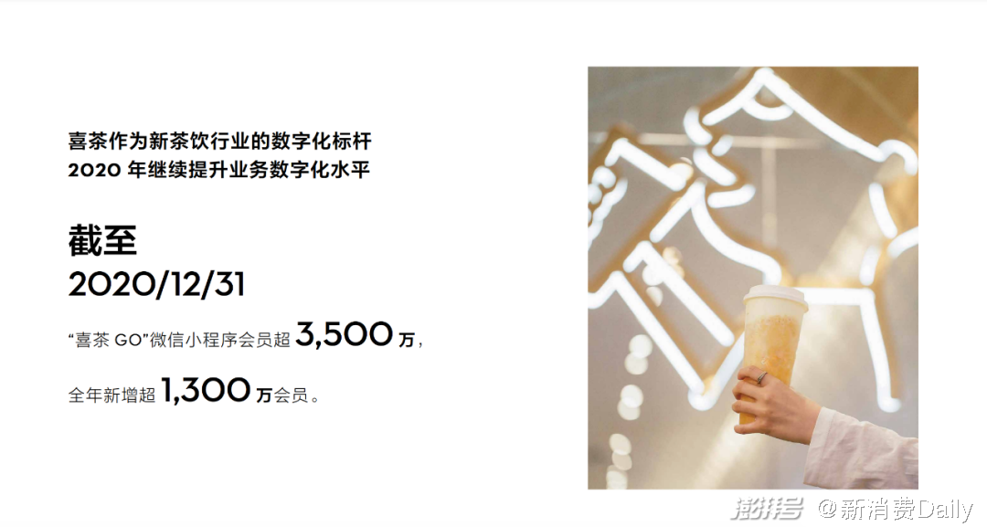 众所周知的是,早在2017年,喜茶便在线下推出会员制,2018年,其将会员制转移至线上,可以看作正式开始数字化布局,2019年,喜茶星球会员全新升级,并在当年开始试水社交电商,以邀请好友赠送饮品券的方式拉新,此外还推出付费年卡会员,提供优先券、满减券、加速兑好物等权益。