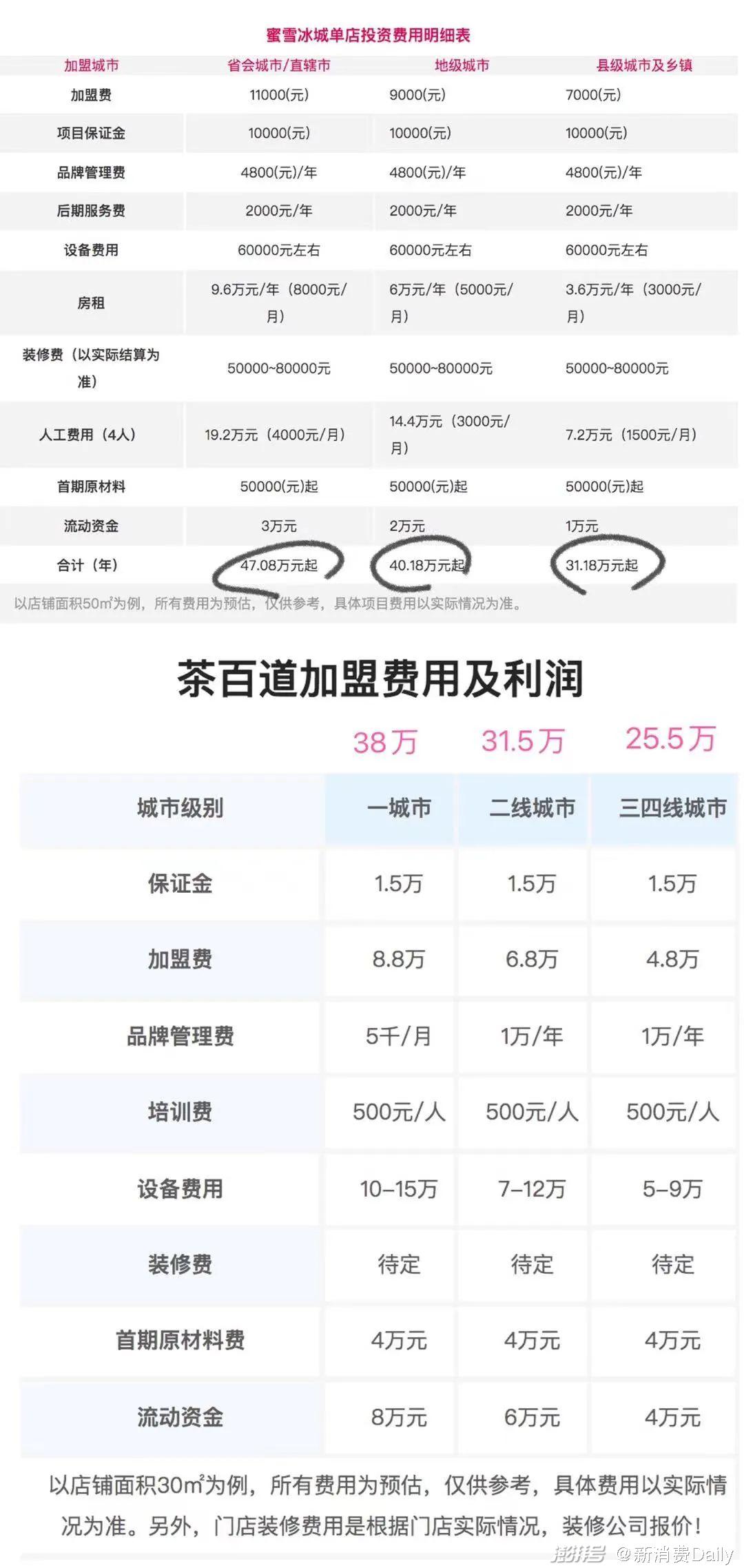 抛开艺人代言问题不谈,以上事件无疑又一次证实着“加盟”的风险,高额的加盟费与经营成本,以及开业后艰难的营收,加盟茶饮店这件事,艰难险阻,困难重重。茶百道、蜜雪冰城等较为知名的茶饮品牌,在高额加盟费之下,其加盟体系还算成熟且有保障,后续会有盈利可能,但那些用“小钱”加盟“快乐方程式们”的加盟商,绝大部分就没那么幸运了。