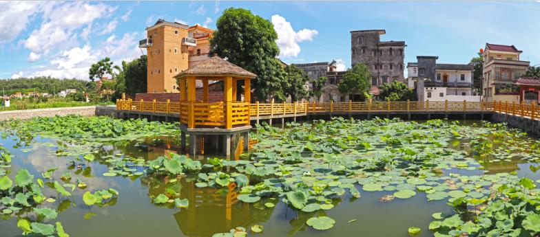 值得一提的是,京梅村还将河道生态治理和风貌提升有机结合,先后利用旧鱼塘改建为“碉楼荷韵”景点;利用鱼塘基种植四季植物,定期清理河流杂物,打造一河两岸四季花开景观;结合田基治理,打造美丽稻田景观,全村水清、岸绿、路美人居环境画卷徐徐展开。