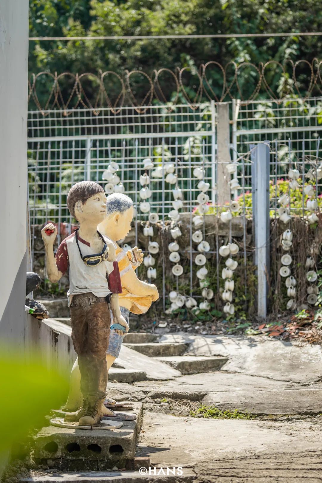 几天后我再来,铁楼梯没断,他俩一起坐坡上晒太阳。